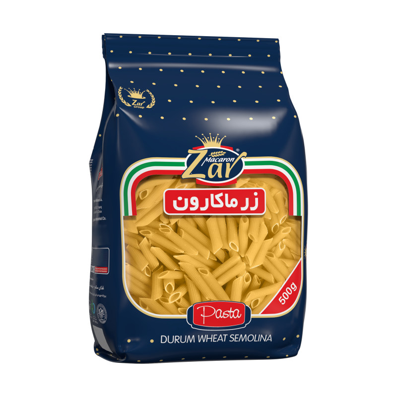 با ماکارونی یا پاستا پنه ریگاته «زر ماکارون» شام یا نهاری لذیذ و انرژی بخشخواهید داشت که ظاهر اشتهابرانگیز آن همه را به خود جذب میکند. این محصول زر ماکارون از ترکیب آب، آرد سمولینا بهدست آمده است و شکل ظاهری آن حالت لولهای دارد. در هر 100 گرم از این ماکارونی زر ماکارون 196.9 کیلوکالری انرژی وجود دارد. پاستا پنه ریگاته زرماکارون در بستهبندی سلفونی عرضه میشود که در آن 500 گرم ماکارونی است.